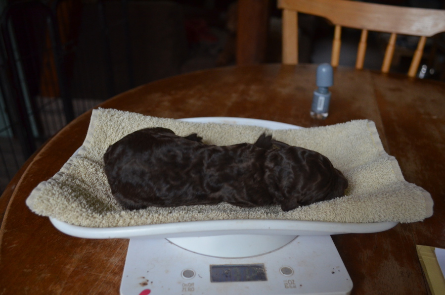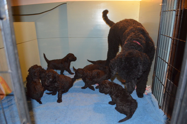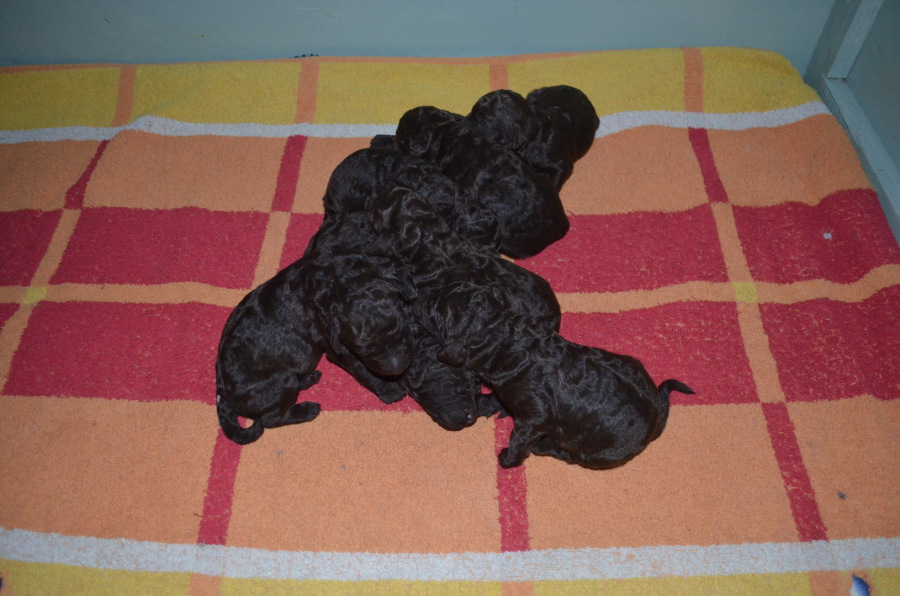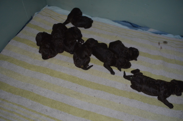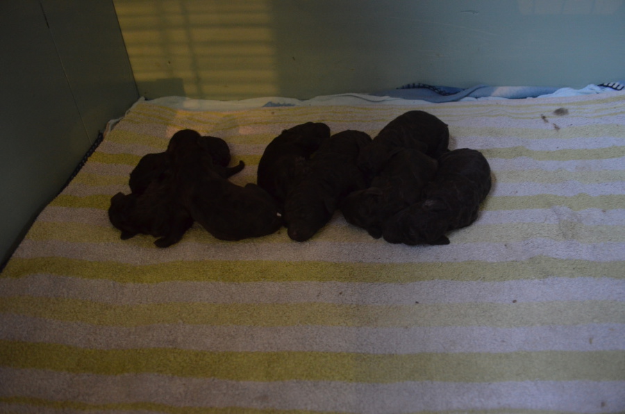Unsere liebe Hündin hat uns in einer fast schon rasenten Geburt acht wunderschöne Welpen geschenkt - alle herrlich dunkelbraun wie Papa Jace!