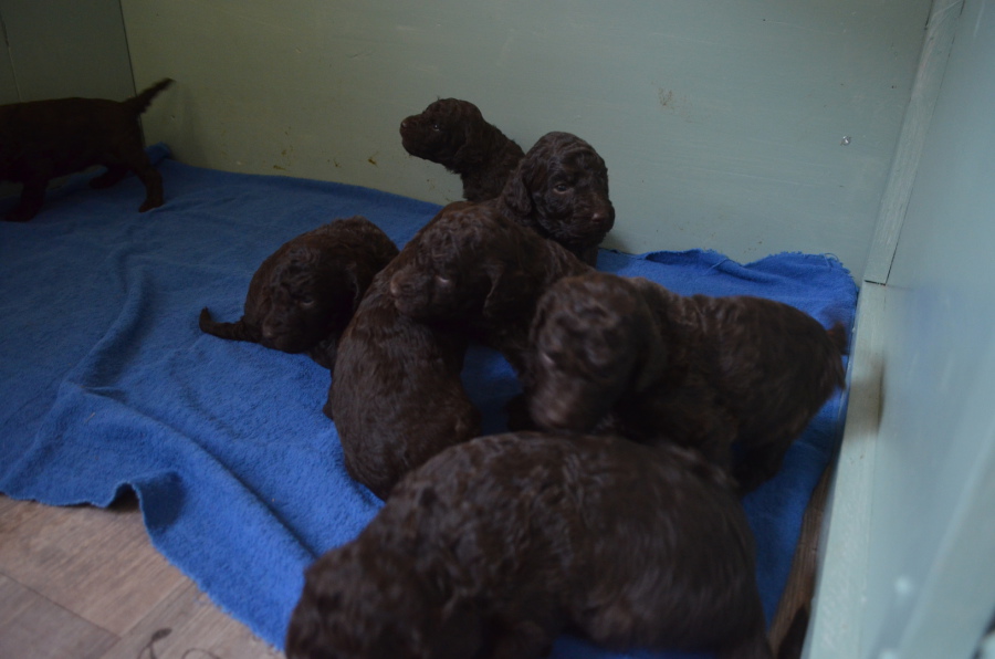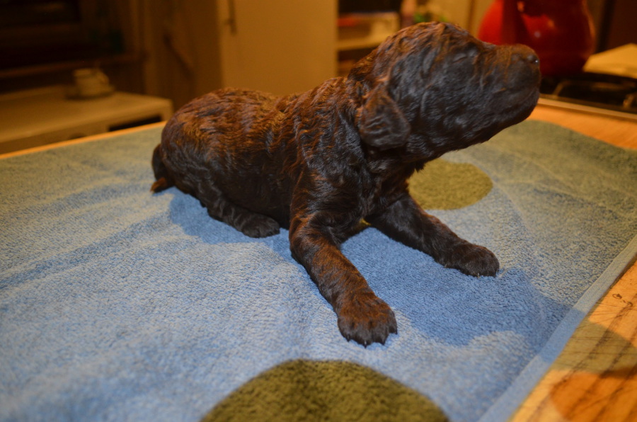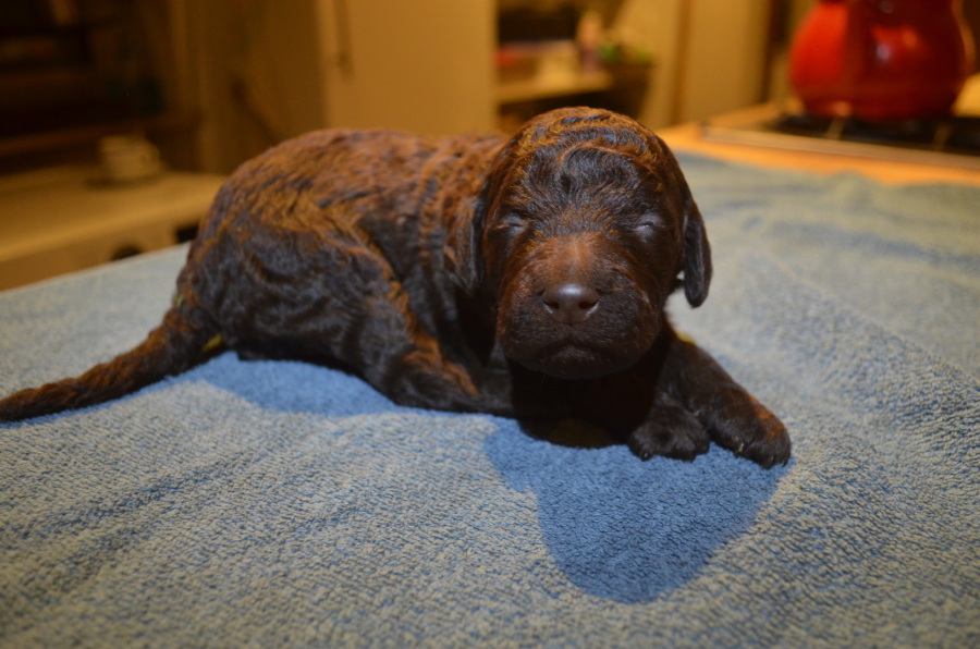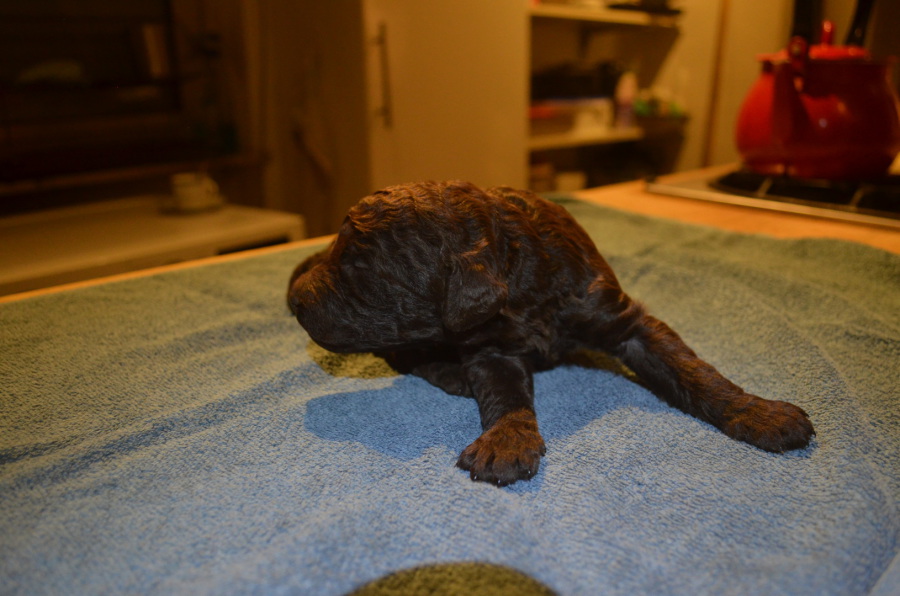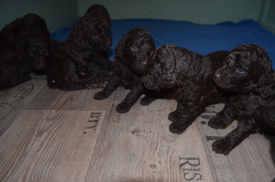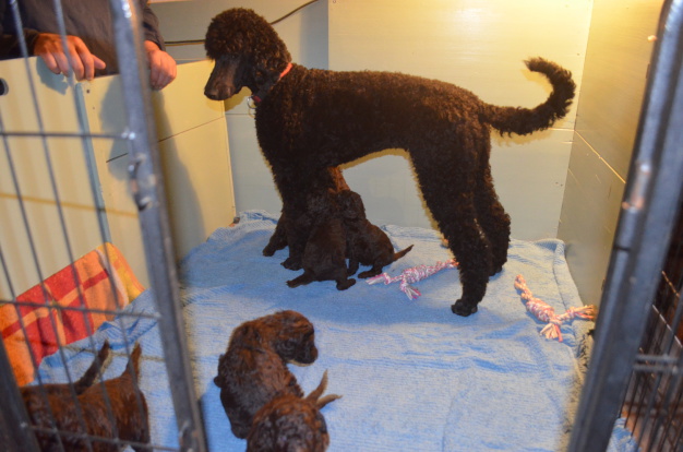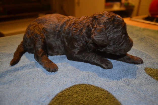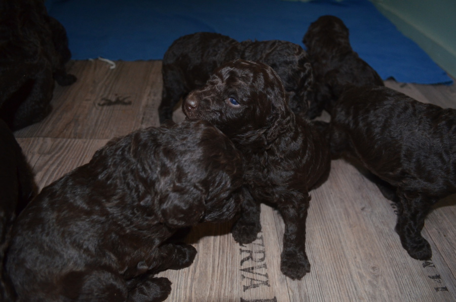 Soviel zur Hardware! Viel wichtiger ist nun die "Software", denn jetzt lernen uns die Welpen endlich endlich kennen! "Willkommen im Leben" sagen wir zu jedem der kleinen Kerlchen! Denn endlich blicken uns die Augen - vielleicht schon erwartungsvoll? - entgegen! Wir freuen uns auf die herrlichen Wochen , die nun vor uns liegen und bitten den Wettergott um ein paar sonnige Nachmittage, denn bald können die Pudelchen ihren ersten Ausflug in den kleinen Auslauf hinter der Küchentür machen.