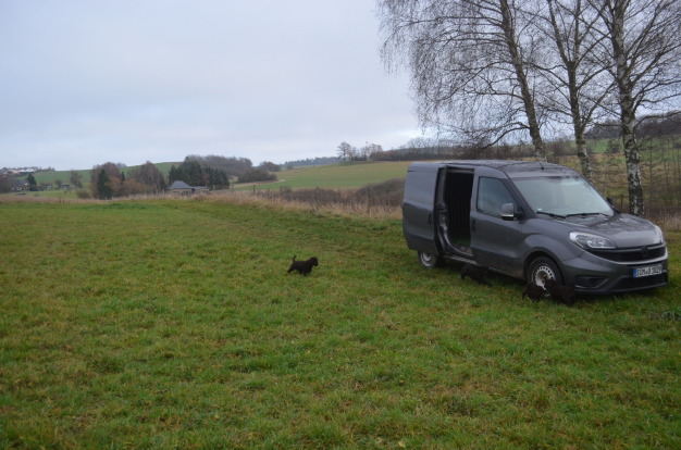... mit seinen vielen schönen Wanderwegen ist der Landkreis Saarlouis sicherlich ein ideales Zuhause für die kleine Pudeldame. Bei ihrer sportlichen Besitzerin wird sie bestimmt eine tolle Heimat finden. Im Moment ist es sehr kalt hier im Hunsrück, aber das nächste Frühjahr ist ja nicht mehr so arg weit und bis dahin sind die Hundekinder schon wieder ein ganzes Stück belastbarer und können so manche Wenderung mitmachen. Natürlich sind wir immer etwas ängstlich, wenn ein Hundekind aus dem Haus geht, aber wir merken auch, daß wir den Welpem mit nun neuneinhalb Wochen immer weniger gerecht werden.