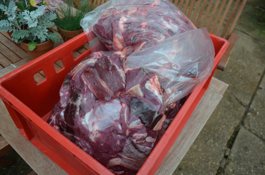 ...28kg frisches Rindfleisch... yeah! Wir werden sehen, was unsere Schnäuzelchen in vierzehn Tagen dazu sagen! Auch das Gemüsepüree kann man ja prima vorbereiten und portionsweise einfrieren.