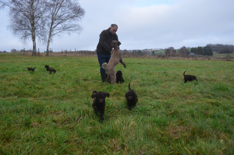 Für uns schleicht sich schon jetzt ein kleines bisschen Wehmut in diese schöne Stimmung, die Zeit der ersten Ausflüge bedeutet doch, daß wir bald Abschied von den liebenswerten kleinen Geschöpfen nehmen müssen. Alle haben ihr neues Zuhause gefunden und ihre neuen Besitzer schon kennengelernt. Uns bleiben nur noch wenige Tage, und wir hoffen noch auf einige schöne Ausflüge in die Hunsrückwiesen, die ja die eigentliche Heimat der kleinen braunen Gesellen sind! Wir werden sie ein ganz kleines Bisschen für immer in unseren Herzen tragen, denn eine gelungene, glückliche und gesunde Aufzucht eines Wurfes Großpudel ist für uns ...ja, was ist es eigentlich?