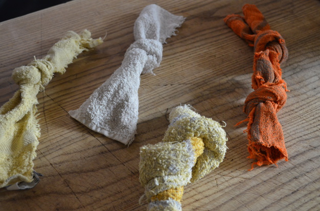 Dann gibt es noch selbstgenähte Canvas-Knochen, waschbar und mit einer Füllung aus alter Jeans...