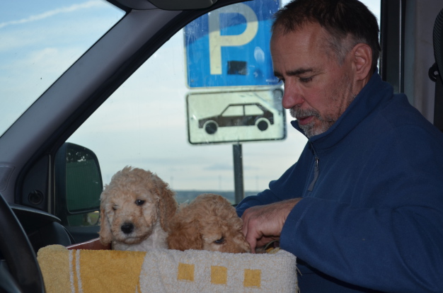 Auch die Ausbildung der kleinen Pudel hat nun eine neue Dimension erreicht, ich komme gar nicht nach mit dem Schreiben: Wir haben nun schon dreimal alle Welpen eine kurze Strecke im Auto gefahren. Dies ist für die spätere Akzeptanz dieses brummenden Ungetüms ganz wichtig.