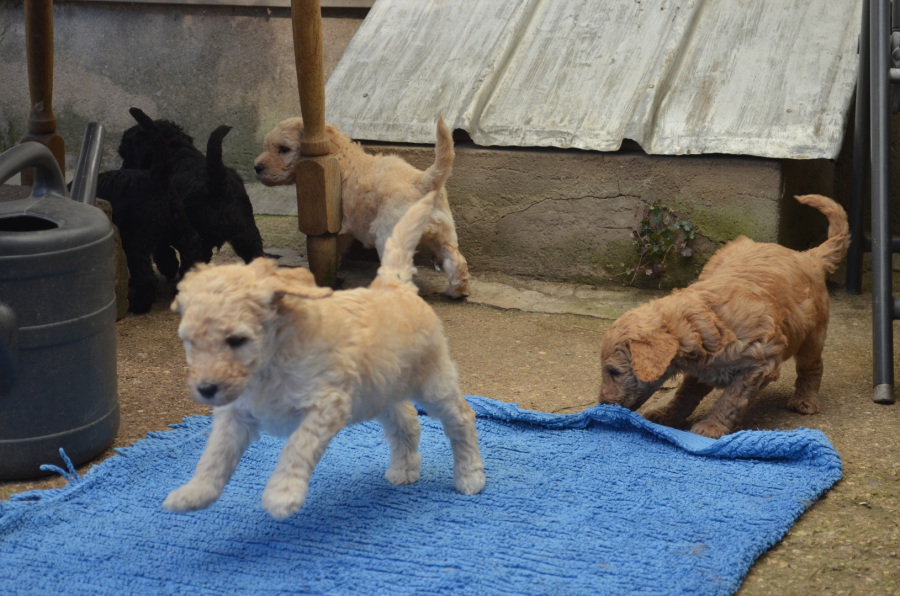 Wir haben eine schöne, ruhige Aufzucht und viel Freude an diesem wunderbaren Großpudelwurf! Die Kleinen wachsen immer weiter, fressen mittlerweile Berge von Fleisch und machen uns viel Freude!