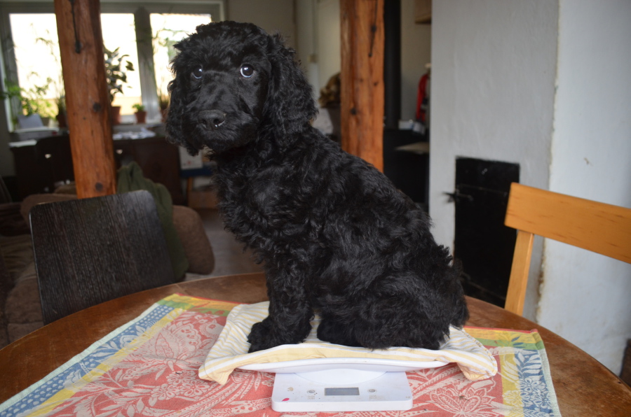 .. und wieder ein kurzes Update! Mutter Malin und ihre acht Pudelkinder sind wohlauf! Wir haben das Gefühl, daß kleine Hunde sich geradezu rasant entwickeln! Wir möchten Euch heute die Gewichtsentwicklung zeigen: